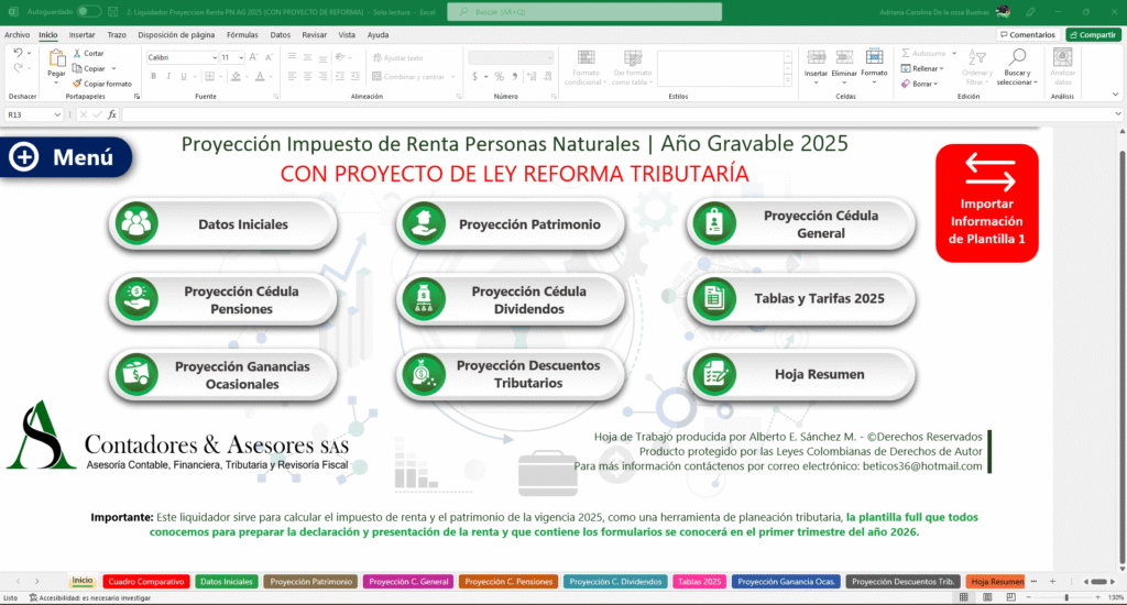 Desde 2013, me especializo en crear herramientas en Excel diseñadas para otros Contadores Públicos en Colombia. Mis productos han sido reconocidos por su calidad y éxito en portales destacados como actualicese.com, entre otros.